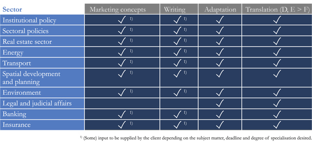 We translate even the most challenging public affairs and public relations-related texts from German or English into French, in particular in our fields of expertise: economics, law, marketing, finance and politics. Depending on your wishes, we can deliver a press-ready translation or a finished text with comments as a basis for dialogue with the author or editorial team.